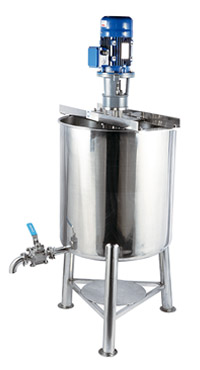 Single jacketed bottom dish plate tank. Draining outlet located on bottom of dish plate which is suitable for pump conveying and enable for draining of material smoothly.